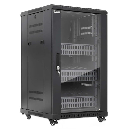 Gabinete mural industrial IP55 de 19" con ventiladores integrados, 18U